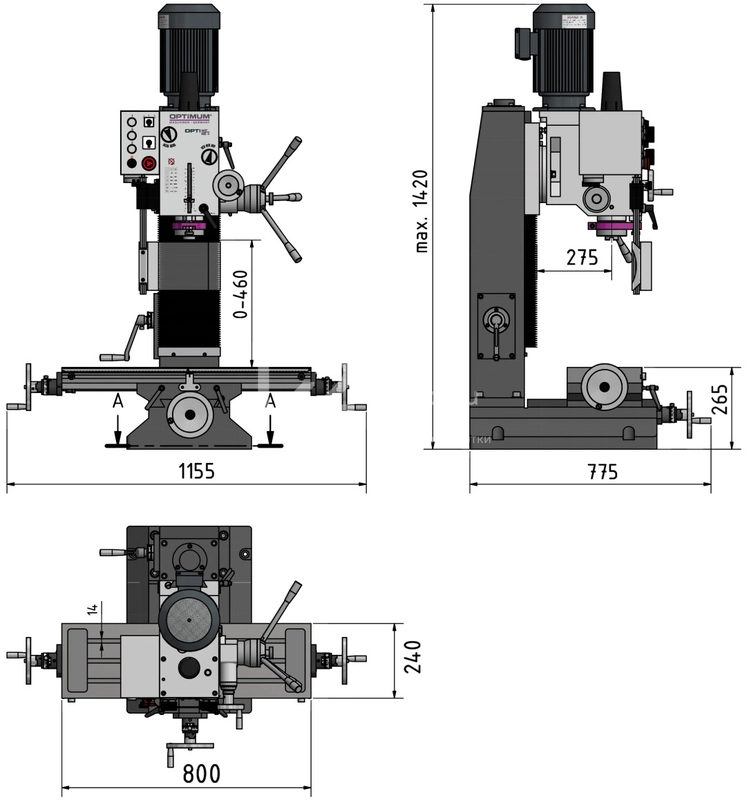 | Макс. расстояние от шпинделя до стола | 460 мм |