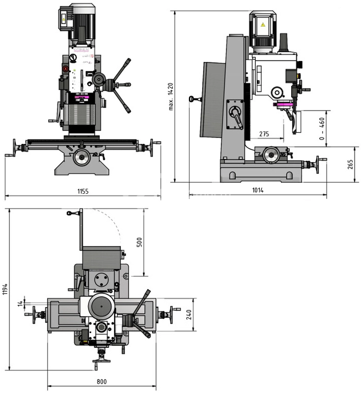 | Макс. расстояние от шпинделя до стола | 460 мм |