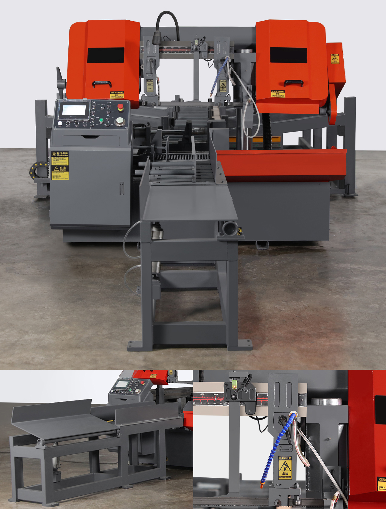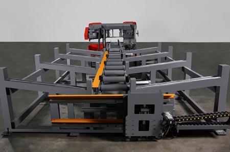 Основной принцип работы автоматического ленточнопильного станка заключается в использовании непрерывно движущейся пильной ленты, которая проходит через направляющие и совершает режущее движение. Станок оснащен гидравлическими тисками с возможностью быстрого зажима заготовок. Весь процесс, от подачи заготовки до ее отрезания, происходит в автоматическом режиме с минимальным участием человека: зажим заготовки – подвод заготовки – запуск пилы – опускание рамы – остановка пилы – подъем рамы – отжим тисков. Встроенная система ЧПУ позволяет полностью автоматизировать процесс резки. Оператор получает возможность программировать и сохранять широкий спектр заданий, что включает в себя: нарезку заготовок различной длины, управление количеством производимых резов.