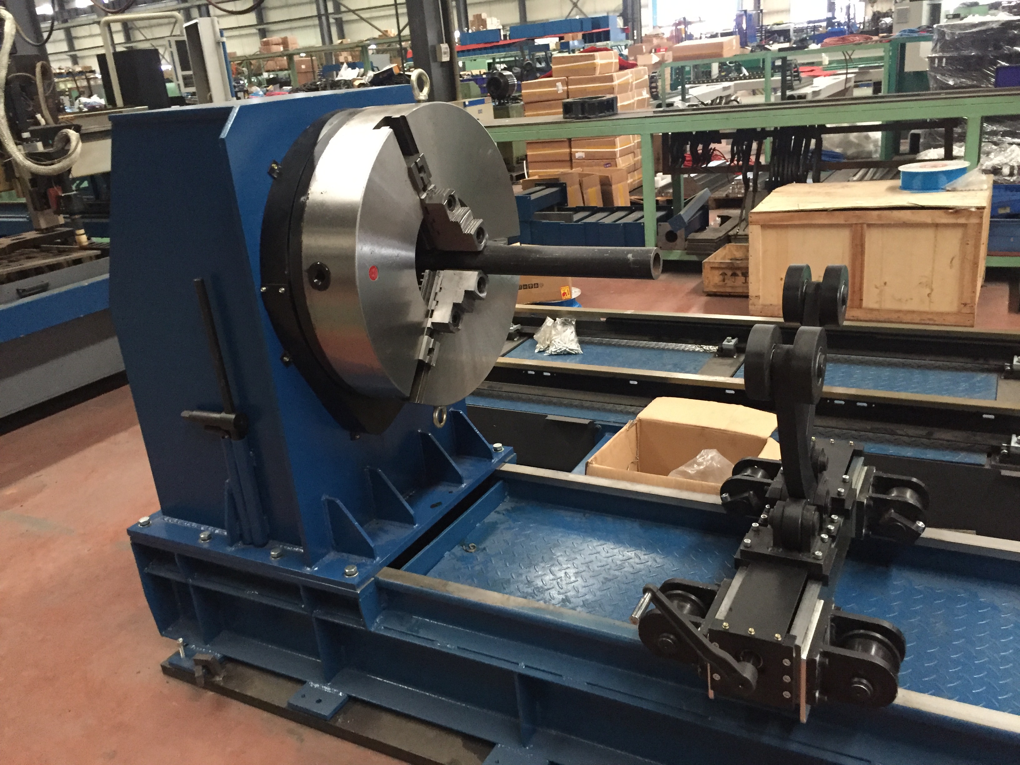 Установка в основном используется для сварки горячих стенок реакторов в нефтяной, химической, угольной, ядерной отраслях и других крупных сосудов под давлением. Вращение детали в автоматической сварочной установке является основным движением, сварочная головка может перемещаться вертикально.