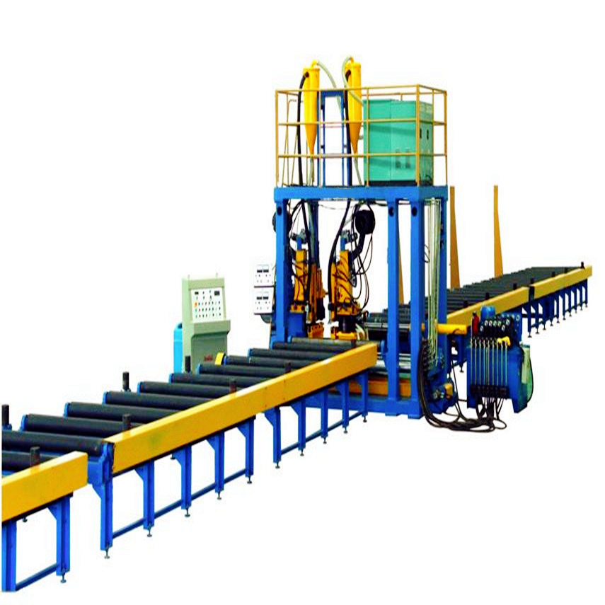 Машина для дробеструйной обработки и очистки двутавровых балок серии INHGP с непрерывной прокаткой исследована и разработана в соответствии с особенностями стальной конструкции. Машина оснащена компьютерным 3-мерным динамическим моделированием для определения местоположения дробеструйных пушек. Машина оснащена высокоэффективным фильтром-цилиндром для удаления пыли с обратной импульсной продувкой.