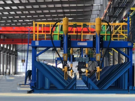 В установке используется синхронная система зажима для осуществления первичного центрирования полки и стенки, что может существенно замедлить и избежать явления раскачивания хвостовика балки во время сборки. Основная передача использует циклоидное колесо и инвертор марки Taiwan TAIAN, скорость сборки может быть регулирована в диапазоне от 0,5 до 6 м/мин.