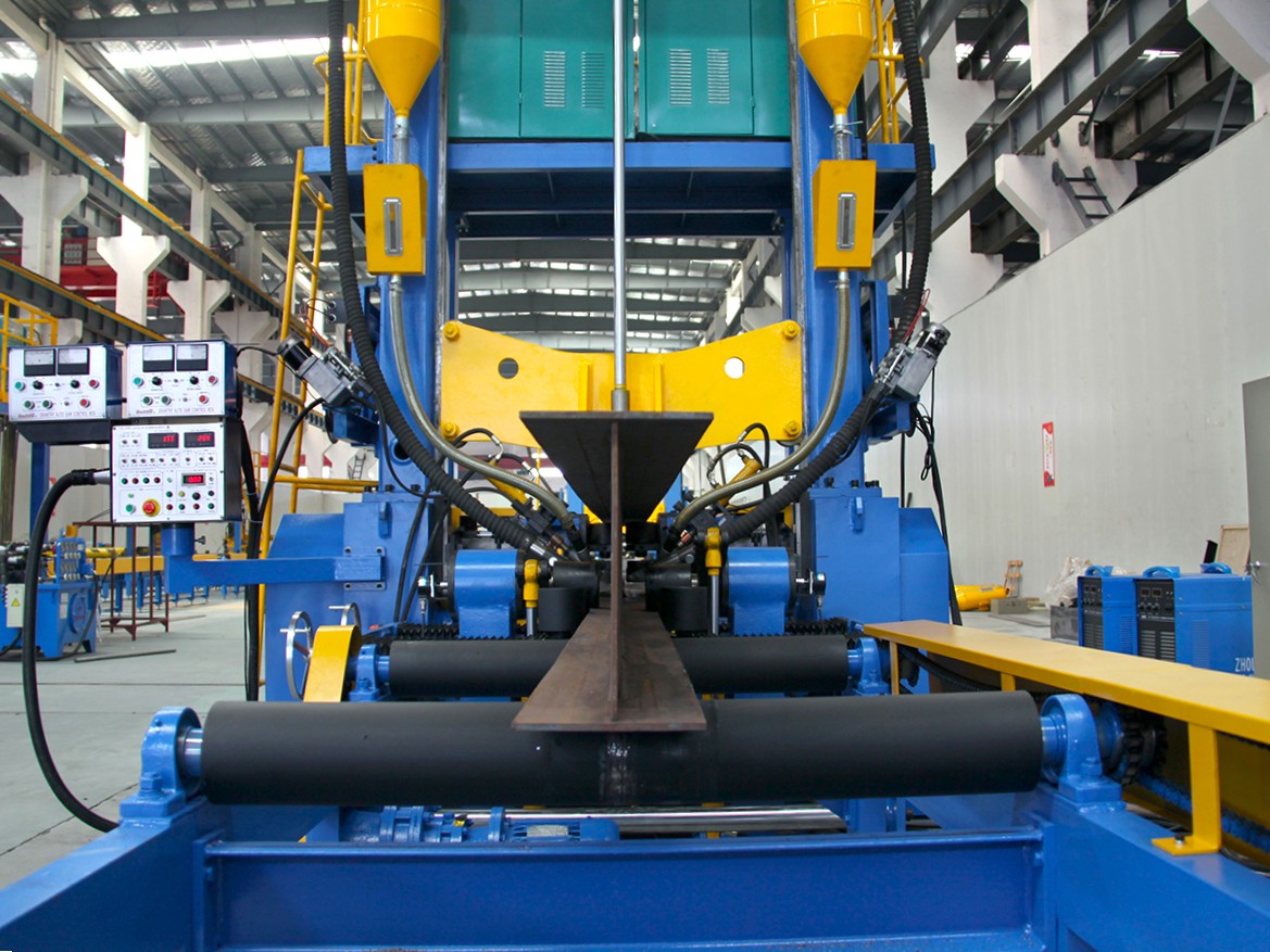 Основная передача приводится в движение мотор-редуктором, регулировка скорости сборки и сварки осуществляется с помощью переменной частоты переменного тока, диапазон регулировки скорости составляет 0,35 - 3 м/мин. Входной и выходной конвейеры имеют приводную силу. Выходной ролик также имеет гидравлическую подъемную функцию, он может поддерживать балку после сварки. Электрический щит управления и операционная панель расположены отдельно, что удобно для эксплуатации. Централизованная система смазки обеспечивает снижение износа и продление срока службы оборудования.