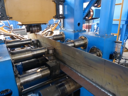 Специальная автоматическая установка для сборки, сварки и правки полок балки объединяет три процесса в одной машине, что повышает производительность, снижает затраты и экономит место при монтаже. Позволяет производить двутавровые и тавровые балки с высокой эффективностью.