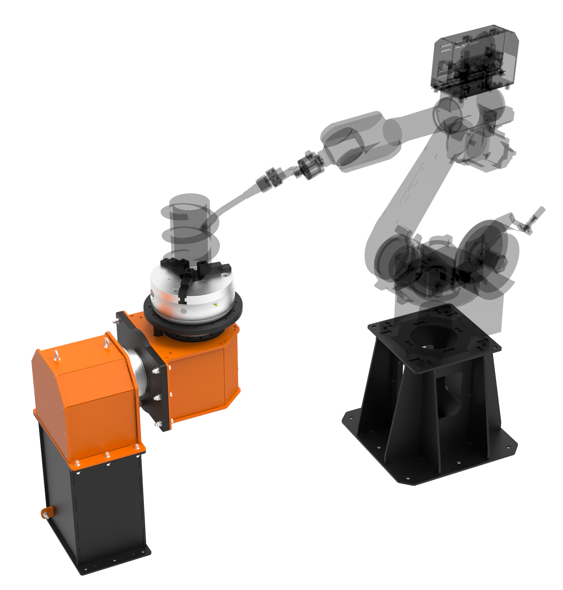 Привод вращения позиционеров осуществляется с помощью сервомоторов, может быть интегрирован в общую систему управления роботизированным комплексом. Приводы позиционеров являются дополнительными осями робота, данная функция обеспечивает управляемое движение изделия в единой системе координат комплекса во время проведения сварочных работ.