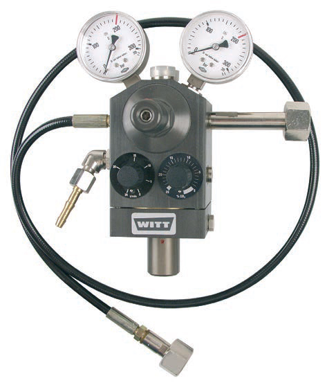 Газовый смеситель ВМ-2М для 2-х газов с двумя интегрированными предохранительными клапанами применяется для сварочной техники. Монтируются непосредственно на газовые баллоны высокого давления, прост в эксплуатации. С помощью поворотных рукояток со шкалой, нанесенной в процентах, и благодаря пропорциональному смешивающему клапану газовая смесь ВМ-2М плавно регулируется. Производительность BM-2M – до 111 норм.л/мин.