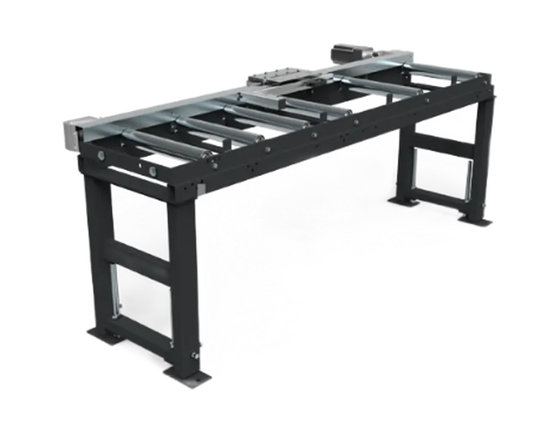- Основание состоит из массивного роликового конвейера серий К 400 или К 520, с прикрепленной линейной направляющей.