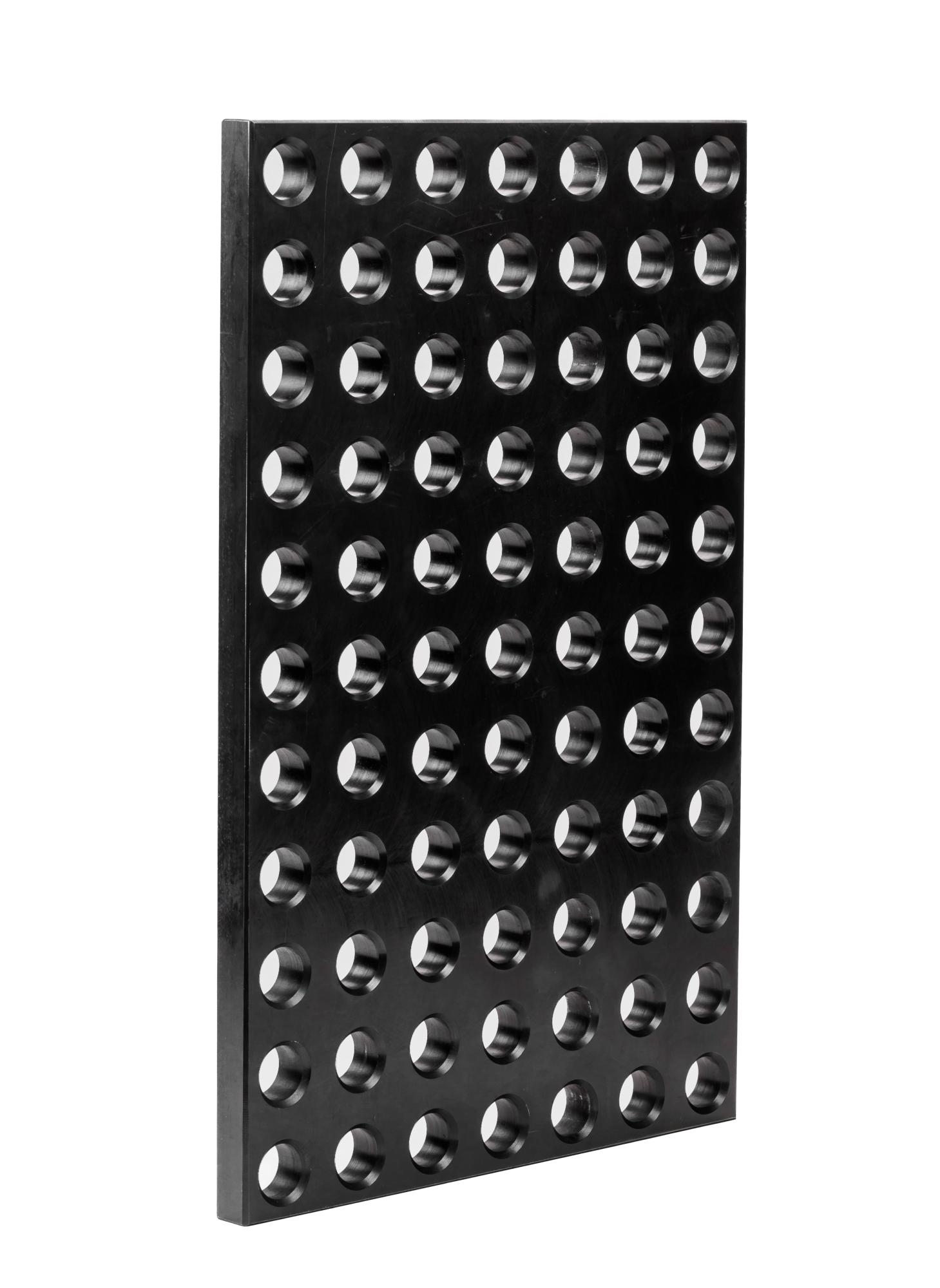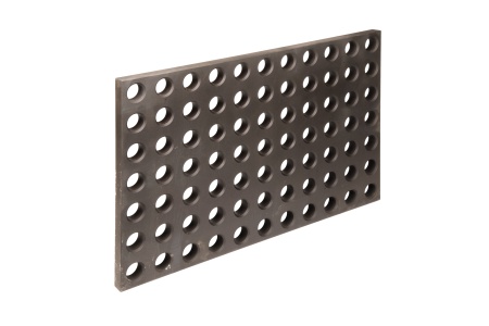 Крепежная плита для позиционирования различных крепежных элементов. Отверстия диаметром 28 мм позволяют закреплять на плите другие виды оснастки. На поверхности стола плита может крепиться с помощью угловых и четырехсторонних упоров, упоров с ребром и прижимных угольников.