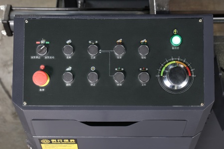 Полуавтоматические станки требуют ручной подачи заготовки, остальные операции (зажим, резка, возврат пильной рамы) выполняются автоматически. При нажатии кнопки или регулятора на панели станка автоматически происходит- включение вращения пильной рамы, включение подачи СОЖ, зажим материала, Распил, подъем пильной рамы, отключение подачи СОЖ, разжим тисков.