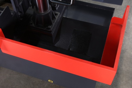 Полуавтоматический одноколонный горизонтальный ленточнопильный станок SVA-33SA-N предназначен для пиления сплошных заготовок сечением до 330 x 450 мм под углом 90°. Конструкция станка оснащена утолщенной колонной, по которой вверх и вниз перемещается горизонтальная пильная рама. Рама, в свою очередь, представляет собой надежную сварную стальную конструкцию. Станок может работать в ручном режиме, где каждая операция требует участия оператора через нажатие кнопки, или полуавтоматическом режиме. В полуавтоматическом режиме станок самостоятельно выполняет весь цикл резки, оператор осуществляет только подачу заготовки. Станок оборудован приводом тяги, который приводит в движение проволочную щетку. Эта щетка выполняет функцию активного удаления стружки в режиме реального времени. Благодаря постоянному очищению рабочей зоны, исключается возможность накопления стружки, что является основной причиной защемления штифта.