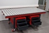 Сборочно-сварочные столы из наборных пластин из алюминиевого анодированного профиля c выдвижными ящиками для инструментов. Используемый для крепления оснастки Т-образный паз на пластинах дает возможность быстро и легко крепить оснастку. Стол имеет компактные размеры, колеса со стопорами для возможности перемещения стола. Вместительные выдвижные ящики для инструментов позволяют организовать удобное рабочее место для сварочных или сборочных работ.