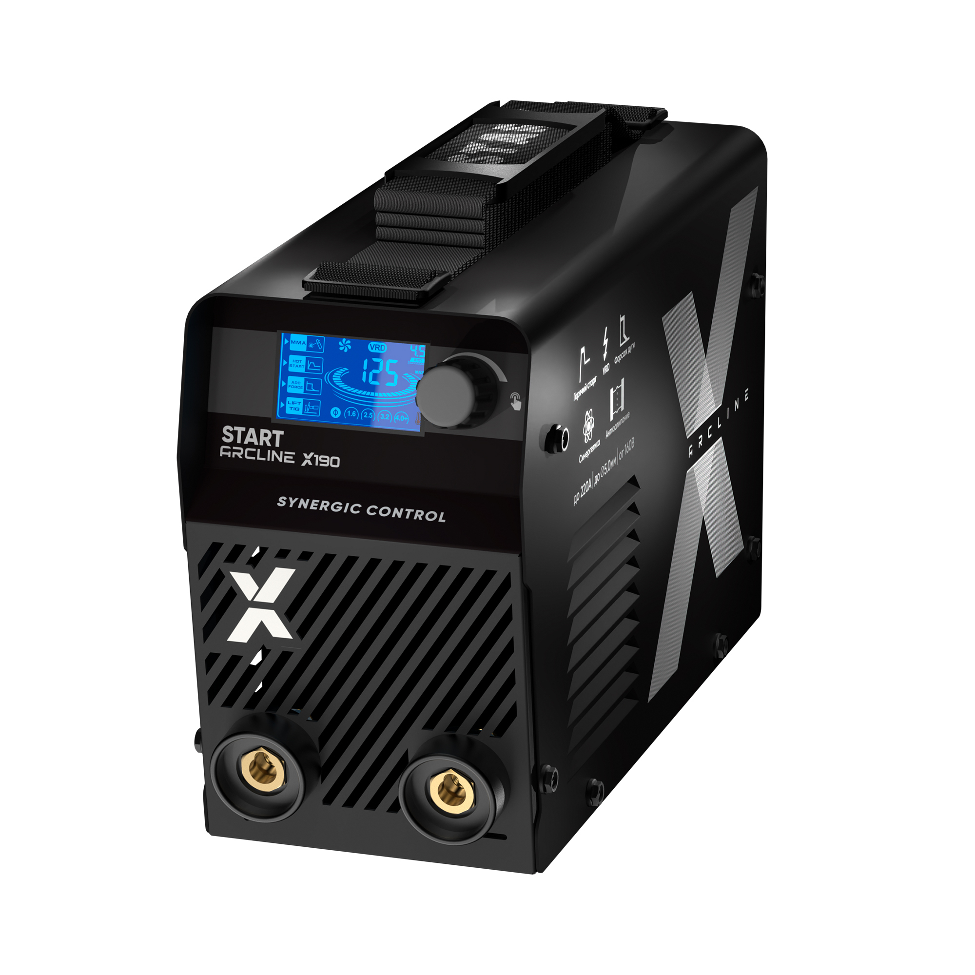 ARCLINE X - новая линейка сварочный инверторов START. Созданные на базе мощных IGBT транзисторов, они имеют синергетическое управление, что значительно облегчает их использование как в быту, так и при профессиональном применении! Компактные размеры и незначительный вес позволяют использовать оборудование как на стационарном посту так и на монтаже.Особенности