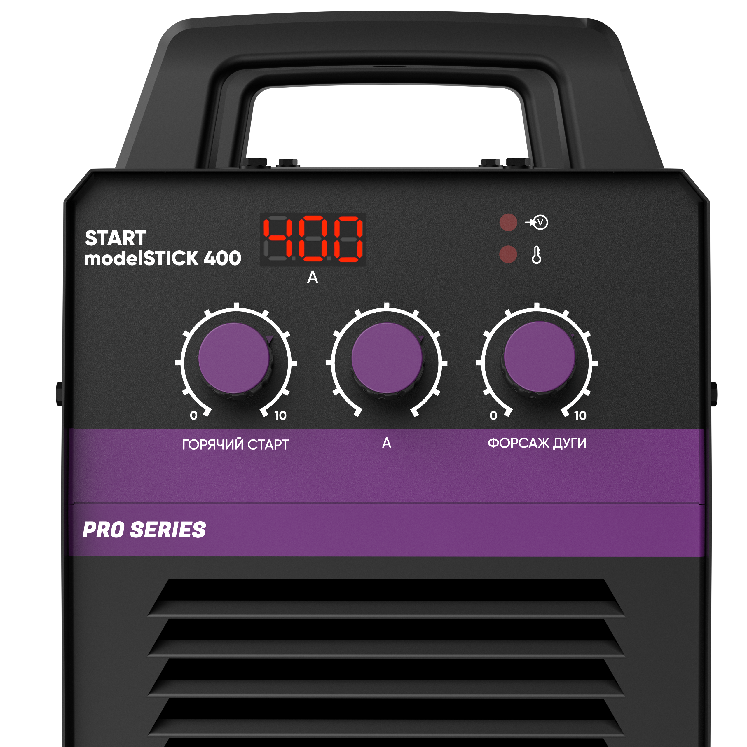 stick400.483.png START modelSTICK 400 идеально подходит для работы в производственных цехах, на строительных площадках, в сервисных и ремонтных организациях. Аппарат рассчитан на продолжительные сварочные циклы с высокой нагрузкой, обеспечивая стабильную работу без перегрева.