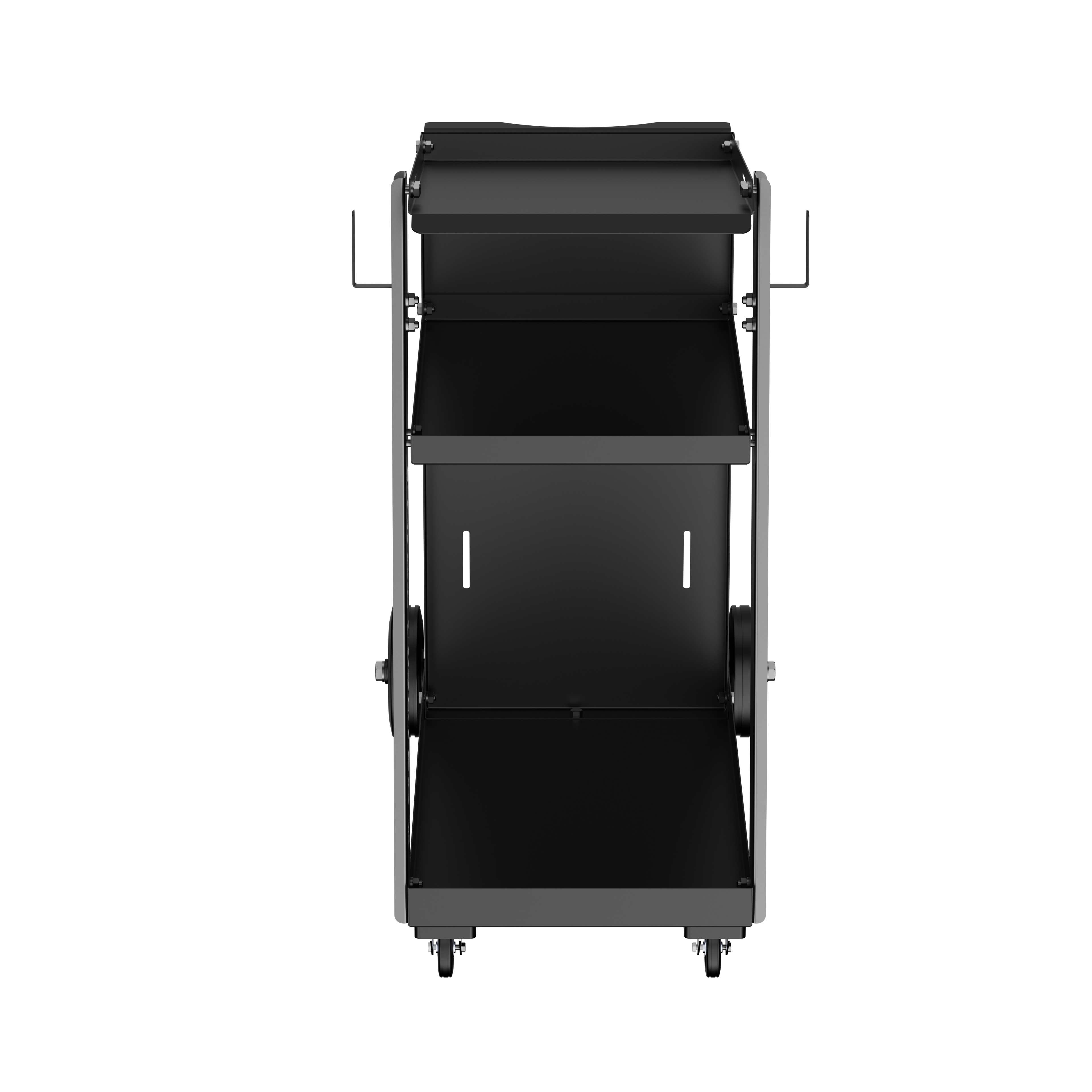 | Верхняя полка – предназначена для сварочного аппарата, расположение на высоте облегчает доступ к управлению. Средняя полка – используется для хранения сварочных аксессуаров, таких как проволока, электроды, защитные перчатки и другие принадлежности. Нижняя полка – специально разработана для установки блока жидкостного охлаждения. |