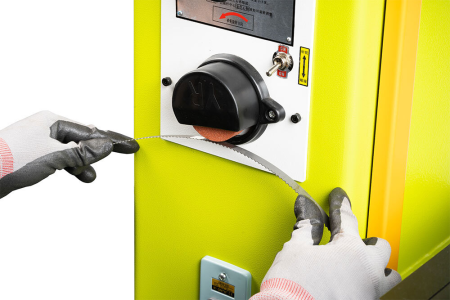 - Полотно ленточной пилы можно обрезать, сварить, заточить и отшлифовать специальным встроенным устройством.