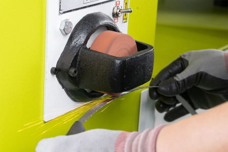- Полотно ленточной пилы можно обрезать, сварить, заточить и отшлифовать специальным встроенным устройством.