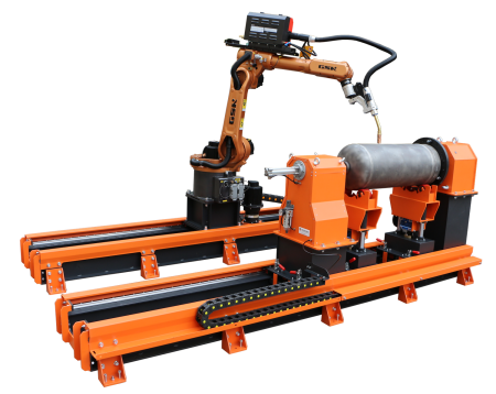 Горизонтальный сварочный вращатель с подвижной пневмопинолью используется в составе роботизированных сварочных комплексов. Привод вращения планшайбы вращателя осуществляется с помощью сервомотора, интегрирован в общую систему управления комплексом и является дополнительной осью робота. Данная функция обеспечивает управляемое вращение изделия в единой системе координат роботизированного комплекса.