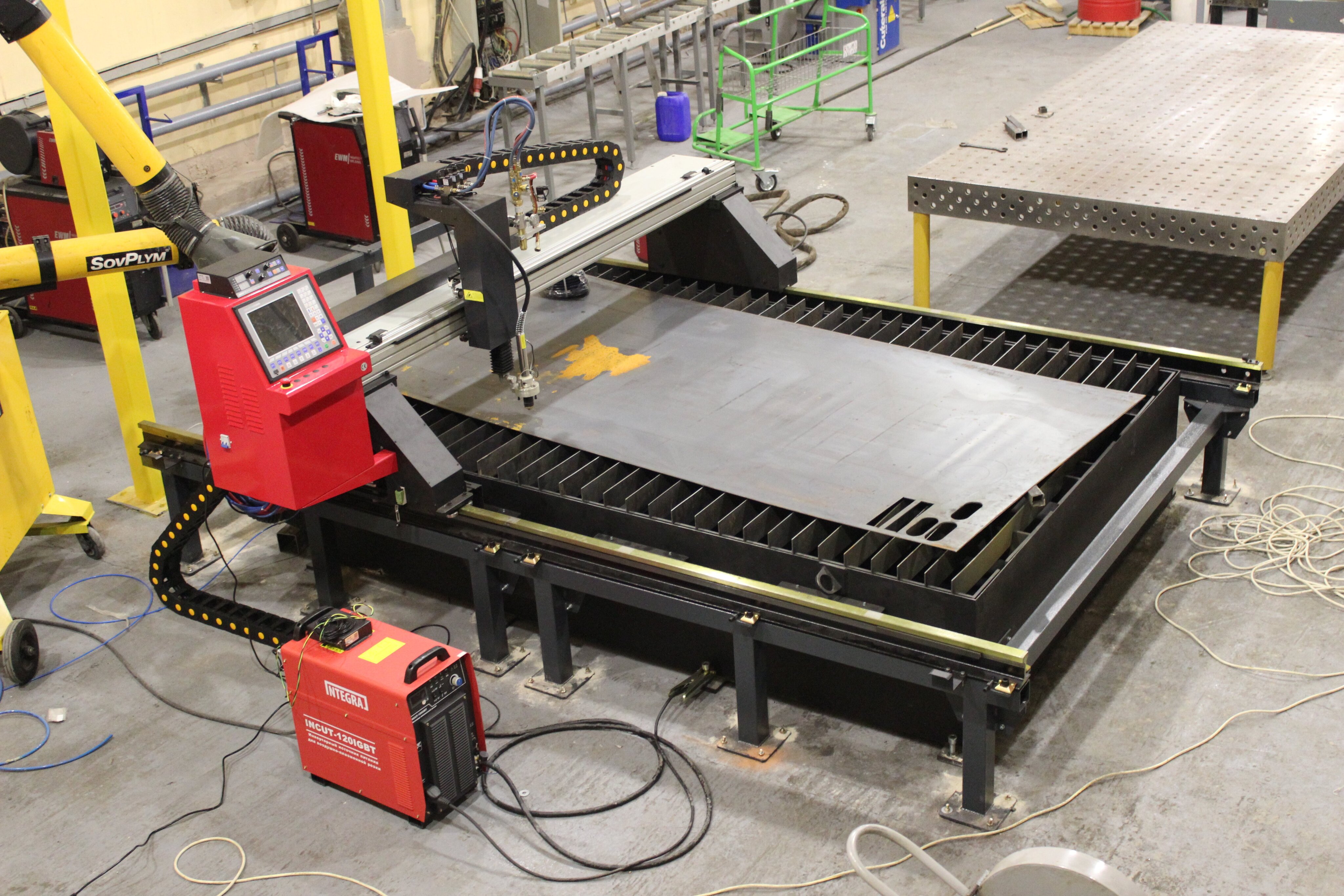 Стол для термической (плазменной) резки металла предназначен к использованию с автономными консольными машинами плазменной и газовой резки или портально-мостовыми станками с ЧПУ без собственного рабочего стола.